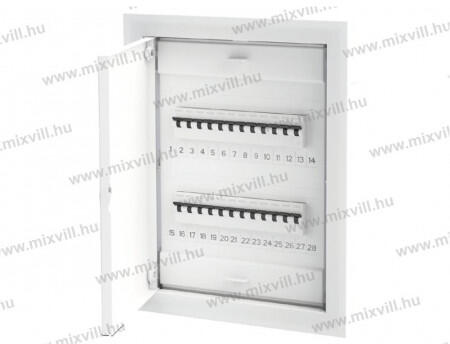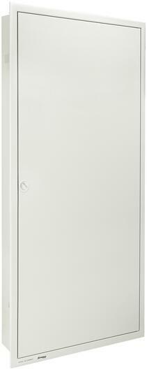 Téglafalba süllyeszthető teli műanyagajtós lakáselosztó- Modul szám: 24+4 - Mérete: 368 x 443 x 93 mm - Beépítési méret: 314 x 314 x 86,5 mm Műanyag ajtó és keret, fehér RAL 9016 Következő szabványoknak megfelel: EN 60670-1 i IEC 60670-24 Felszerelés: téglafalba Névleges áram: több mint 63A szigeteltség: 400V 2. osztály IP30 ajtó nélkül IP40 ajtóval Kiegészítő: Di