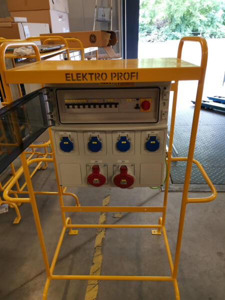 Kalocsa szekrény 4 X Schucko, 1x Ipari aljzat 5P 16A, 1x Ipari aljzat 5P 32A védelmekkel kompletten álványon (N)