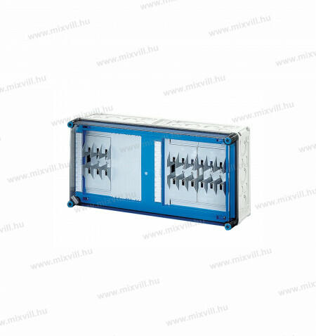 Méret: 300 x 900 x 170 mm Háromfázisú fogyasztásmérőhöz 2 db alsó elhelyezésű, 150x300x170mm-es kábelfogadó szekrénnyel Az elmenő oldalon 2 db 138 mm hosszú, magasított TS35 kalapsínnel 2 db 6 modulos, csapófedeles ablakkal A szekrény oldalán 2 db 3P 16A/230V, 1 db 5P 16A/400V dugalj található A kábelfogadó oldalon 1 db 138 mm hosszú, TS35 kalapsínnel 4 pólusú, 25/16mm