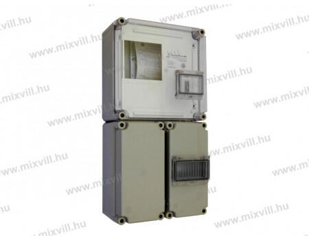 Csatári Plast PVT-3030-FO 1x6 ÁK egyfázisú fogyasztásmérő tokozat átlátszó fedéllel, kábelfogadóval, kismegszakító tokozattal, 1-1 db alsó elhelyezésű, 150 x 300 x 170 mm méretű kábelfogadó és elmenő tokozattal 1-1 db 138 mm hosszú TS35 magasított kalapsínnel Az elmenő oldalon 1 db 6 modulos, csapófedeles ablakkal 2 db PG36 furattal