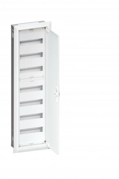 Hager Univers FWU71S Fém mezős elosztó 84 modul, 7 sor, 1153x353x110mm, (fal kivágás 1102x305x110mm) teli ajtóval, IP30, süllyesztett