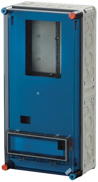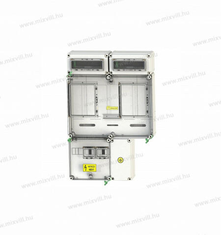 Háromfázisú fogyasztásmérőhöz Felső elhelyezésű kismegszakító tokozattal 1 db 12 modulos csapófedeles ablakkal Maximum 12 db kismegszakító kezeléséhez 1 db 288 mm hosszú TS35 magasított kalapsínnel PE és N sorkapcsokkal