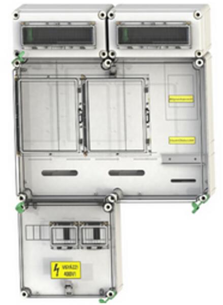 Méret: 300 x 450 x 170 mm Egyfázisú, egy mérőhelyes, hőszivattyú üzemeltetésére használt fogyasztásméréshez Átlátszó fedéllel Csapófedéllel a méretlen kismegszakítók kezeléséhez