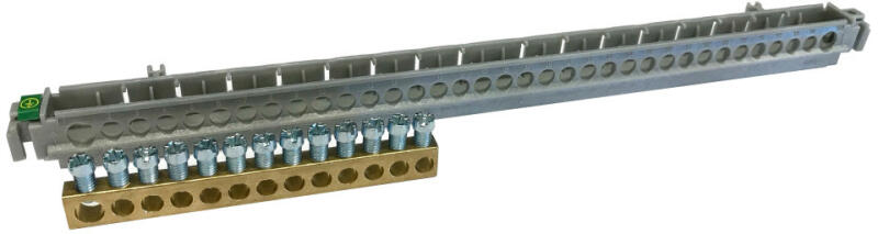 Legrand 134804 PractiboxS 18 modul/sor-os szekrényhez, 1 x (1x25mm2 + 12x16mm2) csupasz PE elosztókapocs szigetelt tartóval; Icc=10 kA