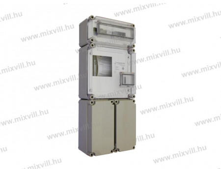 Csatári Plast PVT-3030-FSK2 F12ÁK egyfázisú fogyasztásmérő tokozat átlátszó fedéllel, kismegszakító szekrénnyel, kábelfogadóval 2 db alsó elhelyezésű, 150 x 300 x 170 mm méretű kábelfogadó tokozattal 1-1 db 138 mm hosszú TS35 magasított kalapsínnel 25/16 mm2 vezeték fogadására alkalmas főáramköri kapoccsal Felső elhelyezésű kismegszakító tokozattal, 1 db 12 mod