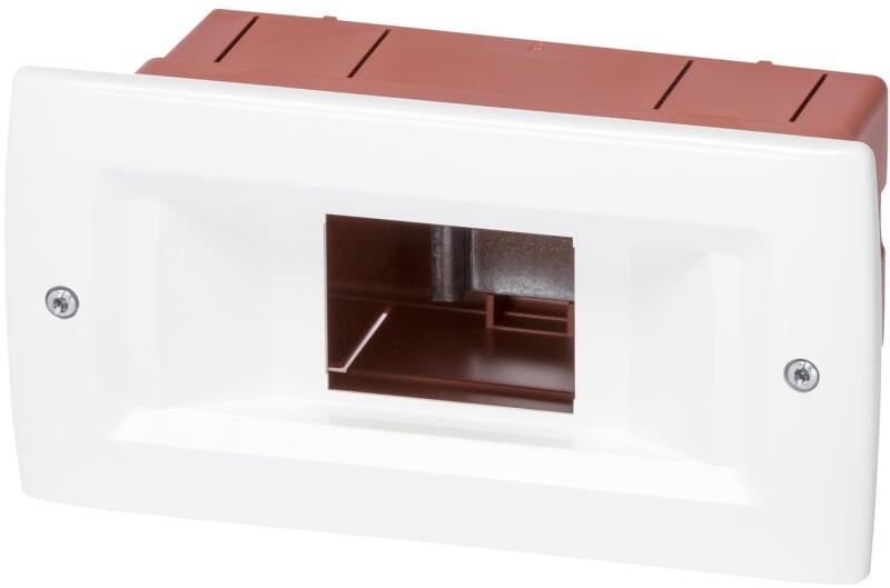Süllyesztetten szerelhető biztosító tábla, 2db 17,5mm-es moduláris eszköz részére. Tartalmaz: 35mm-es szabványos TS sínt, az eszközök rögzítésére. Külső méretek: 83 x 160 x74 mm