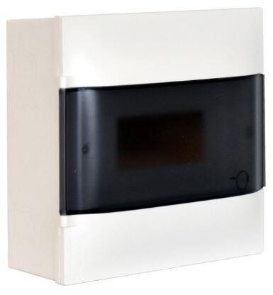 Felületre szerelhető biztosító tábla, 12db 17,5mm-es moduláris eszköz részére. Tartalmaz: 35mm-es szabványos TS sínt, az eszközök rögzítésére, füstszínű ajtót, PE N síneket Méretek:236 mm x 328 mm x 107 mm ( magasság x szélesség x mélység ) Megfelel az IEC61439-3 szabványnak. II. érintésvédelmi osztály 650°C-ig önkioltó műanyag falon kívüli doboz