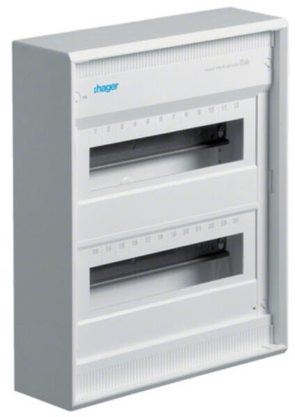 HAGER Volta kiselosztó IP30, 2x12modul, falon kívüli, ajtó nélkül 370x305x96,5mm VA24B