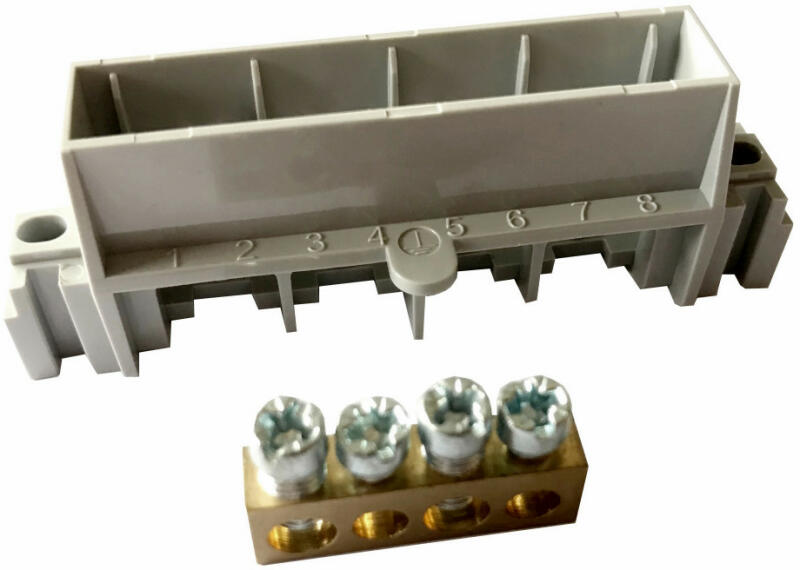 Legrand 134800 PractiboxS 4 modulos szekrényhez, 1 x (2x16mm2 + 2x10mm2) csupasz PE elosztókapocs szigetelt tartóval; Icc=6 kA