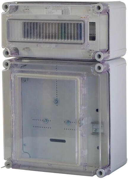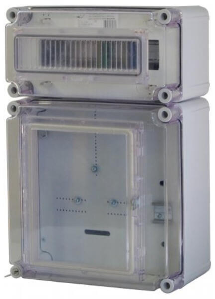 CSATÁRI PLAST PVT EON 3030 ÁK 12 – F - AM E. ON Egyfázisú mérőhely, 300x450x170mm (CSPEA 33215002) Termék információ: E. ON Egyfázisú mérőhely PVT3030ÁK12-F 1F fogy. mérő EM ablakkal, kulcsos zárral+kismeg. sz. , alsó maszkkal 300x450x170mm. Egyfázisú fogyasztásmérőhöz felső elhelyezésű kismegszakító tokozattal, 1 db 12 modulos, csapófedeles ablakkal, maximum 12 db