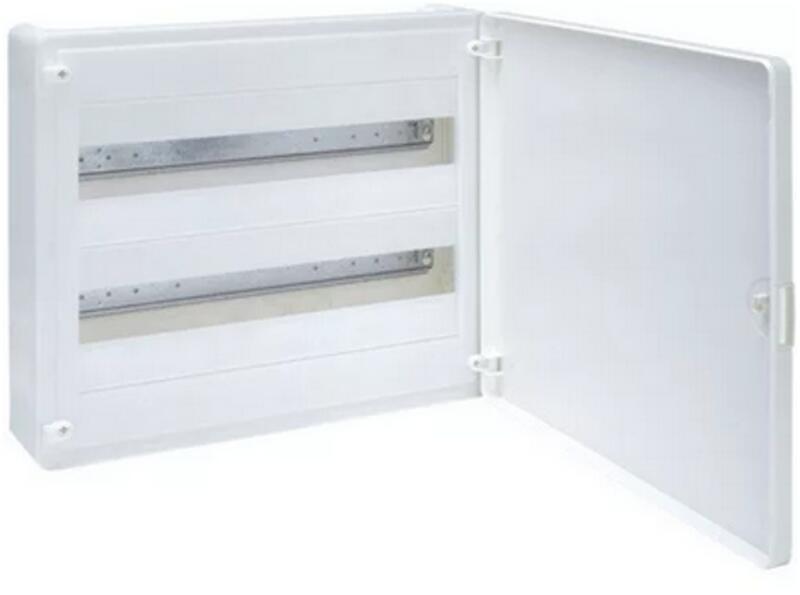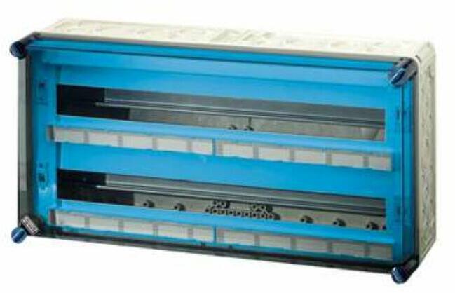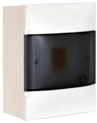 Felületre szerelhető biztosító tábla, 4db 17,5mm-es moduláris eszköz részére. Tartalmaz: 35mm-es szabványos TS sínt, az eszközök rögzítésére, füstszínű ajtót, PE N síneket Méretek:216 mm x 184 mm x 100 mm ( magasság x szélesség x mélység ) Megfelel az IEC61439-3 szabványnak. II. érintésvédelmi osztály 650°C-ig önkioltó műanyag falon kívüli doboz