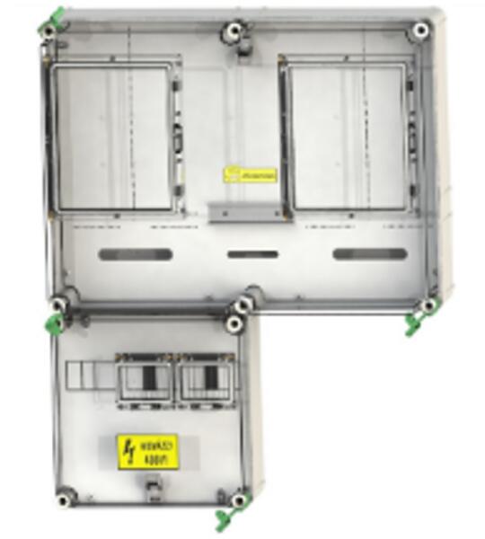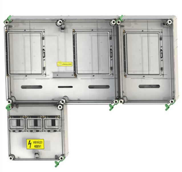 Hensel MI 72400 üres fogyasztásmérő szekrény átlátszó fedéllel 300x600x170 72400 2000080 Max. beépítési mélység 146 mm beépített mérőkereszttel, mérőcsavarokkal és kalapsínekkel Méretlen helyen történő használata esetén egyeztessen a helyi elosztói engedélyessel Fogyasztásmérők hárompontos rögzítéséhez Fedélzárás szerszámmal 2 helyen plombálható Alapanya