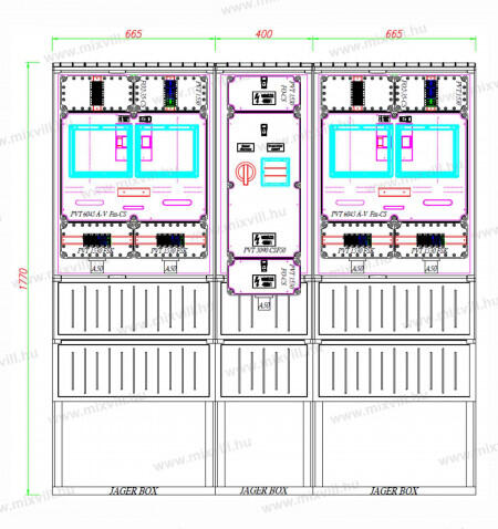 PVT K-L Lábazati Ikerházi mérés 2x Általános+Vezérelt/H tarifa elmenő oldalon sorkapocs 2125/2022 Mérete : 1730x1770mm