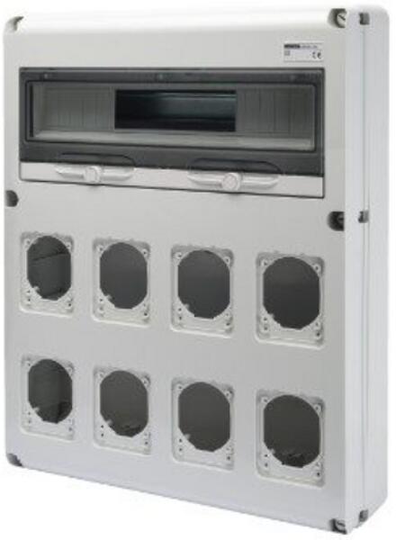 UV és ütésálló álló moduláris, műanyag kültéri elosztószekrény Modulok száma: 24 modul (2x12) Mérete: - Magasság: 400mm - Szélesség: 300mm - Mélység: 170mm Anyagában UV-álló Szigetelési feszültség: 690V Ütésállóság: IK10 Tartozékok: - Háromszög kulcs - Galvanizált fém szerelő lemez - Rögzítő készlet falra szereléshez - 35mm kalapsín - Modul takaró Körny