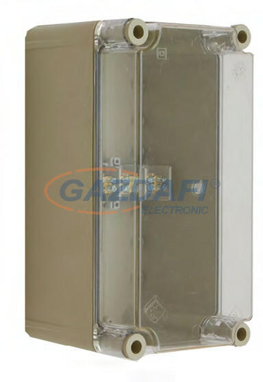 Az UVPB-5040A anyagában UV álló átlátszó ajtós műanyag elosztószekrény, IP65 védettségű. Anyaga halogénmentes erős ABS műanyag, Mérete 500x350x180mm. Mérete: - Magasság: 400mm - Szélesség: 300mm - Mélység: 170mm Anyagában UV-álló Szigetelési feszültség: 690V Ütésállóság: IK10 Halogénmentes Környezeti hőmérséklet: -25... +50°C IP védettsége: IP65 Anyaga: AB