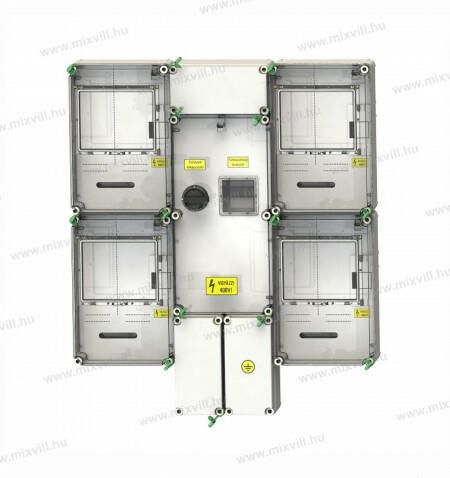 PVTCS 2-4 Két-négy felhasználási helyes M63A csoportos mérés rendszer, felületre szerelt kivitelben, túlfeszültség levezetővel, tűzeseti leválasztóval CSP21. tT001 (PVTCS 2-4)-K-4(M63A) Tf_Tl/ + Mérete: 900x1050mmPVT 3090 CSF50 1db PVT 3045 Fm-CS 4db PVT 1530 FO-CS 1db
