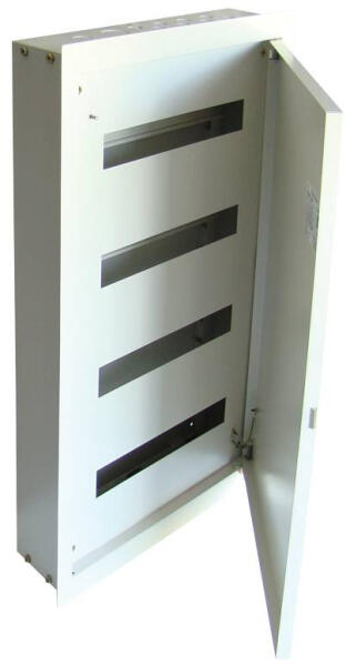 Tracon EDFKSN-18/4 Műanyag kiselosztó, 72 modul, 4 sor, teli sík ajtóval, IP40, falon kívüli Szerelési mód: falon kívüli Sorok száma: 4 Modulszélesség: 18 Fedél/burkolat fajtája: fedél Átlátszó fedél/ajtó: Nem Ház anyaga: műanyag Magasság: 872 mm Szélesség: 464 mm Mélység: 120 mm Földelő sorkapocs: Igen Nullavezető sorkapocs: Igen DIN-sín: Nem Szín: fehér Védetts