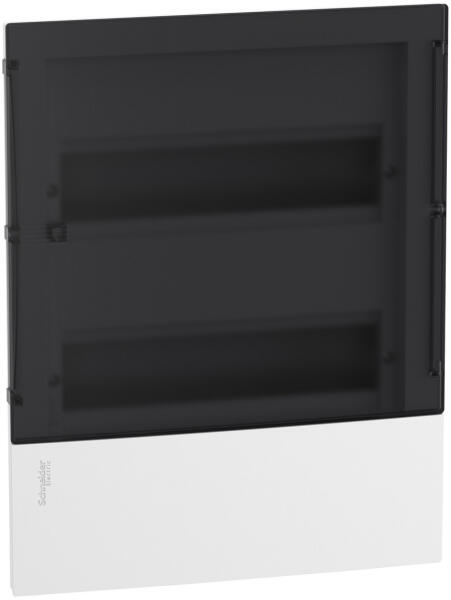 RESI9 MP Kiselosztó, füstszínű átlátszó ajtó, süllyesztett, 2x12 modul, PEN sín, komplett, fehér Kiegészítő jellemzőkA sorkapcsok száma1 föld (csavart) mellett 16 kimenők 1 nulla (csavart) mellett 16 kimenőknévleges áramerősség63 Asorkapocs funkciójaföld / nullaÖsszesen 18 mm-es modulok249 mm furattávolság24belső mélység76 mmA sín típusa35 mm aszimmetrikus sínszek