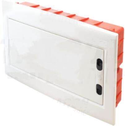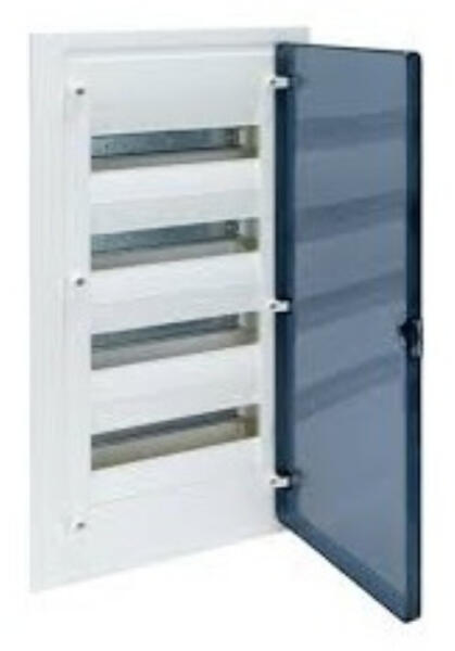 HAGER Golf kiselosztó, 4 soros, 72M, süllyesztett, átlátszó ajtó, 652x426x72mm falkivágásba (VF418TD) Termék információ: IP védettség: Beltérben IP40; kültérben IP30 IK07; szigetelési osztály: II szín: RAL9010 fehér szerelhetőség 63A/400V 50Hz vezeték melegedési teszt: 850 °C szabványok: minden termék megfelel az IEC 60439-3 szabványnak és az RoHS valamint a WEEE elő
