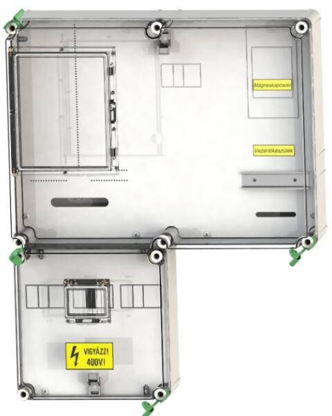 CSATÁRI PLAST PVT EON 3060 1/3 VFm - AM E. ON Fogyasztásmérő szekrény, 300x600x170mm (CSPEA 36050000) Termék információ: E. ON Fogyasztásmérő szekrény PVT3060-VFm éjszakai fogy. mérő 1v3f EM ablakkal, kulcsos zárral, alsó maszkkal 300x600x170mm. 300x600x170 mm, egy- vagy háromfázisú vezérelt mérőóra és hangfrekvenciás vezérlőkészülék számára kialakított szerelőla