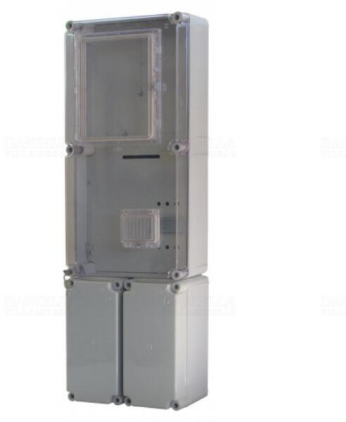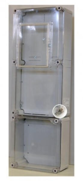 CSATÁRI PLAST PVT EON 3060 FO2 - AM E. ON Háromfázisú mérőhely, 300x900x170mm (CSPEA 36331100) Termék információ: E. ON Háromfázisú mérőhely PVT3060FO2 1-3F fogy. mérő EM ablakkal, kulcsos zárral, kábelfog+elmenő, alsó maszkkal 300x900x170mm. Háromfázisú fogyasztásmérőhöz, 2 db alsó elhelyezésű, 150x300x170mm-es kábelfogadó tokozattal, melyek 1-1 db 138 mm hosszú,