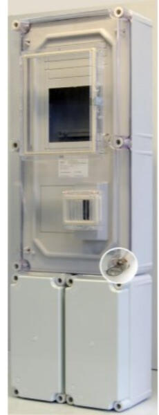 CSATÁRI PLAST PVT EON 3060 FO2 - AM E. ON Háromfázisú mérőhely, 300x900x170mm (CSPEA 36331100) Termék információ: E. ON Háromfázisú mérőhely PVT3060FO2 1-3F fogy. mérő EM ablakkal, kulcsos zárral, kábelfog+elmenő, alsó maszkkal 300x900x170mm. Háromfázisú fogyasztásmérőhöz, 2 db alsó elhelyezésű, 150x300x170mm-es kábelfogadó tokozattal, melyek 1-1 db 138 mm hosszú,