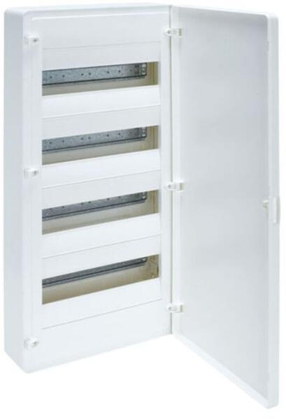 HAGER Golf kiselosztó, 4 soros, 48M, falon kívüli, teli ajtó, 647x282x99mm (VS412PD) Termék információ: IP védettség: Beltérben IP40; kültérben IP30 IK07; szigetelési osztály: II szín: RAL9010 fehér szerelhetőség 63A/400V 50Hz vezeték melegedési teszt: 650 °C szabványok: minden termék megfelel az IEC 60439-3 szabványnak és az RoHS valamint a WEEE előírásoknak 4 x 12 mod