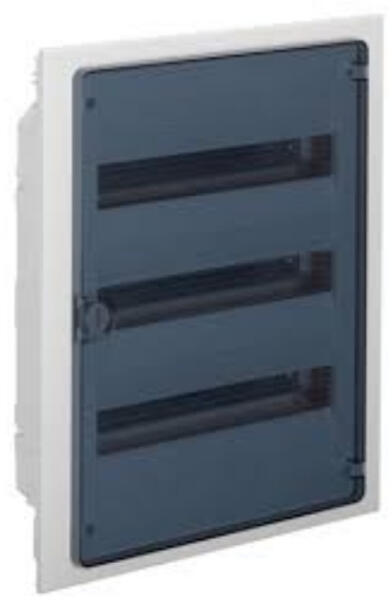 HAGER Golf kiselosztó, 3 soros, 54M, süllyesztett, átlátszó ajtó, 507x426x72mm falkivágásba (VF318TD) Termék információ: IP védettség: Beltérben IP40; kültérben IP30 IK07; szigetelési osztály: II szín: RAL9010 fehér szerelhetőség 63A/400V 50Hz vezeték melegedési teszt: 850 °C szabványok: minden termék megfelel az IEC 60439-3 szabványnak és az RoHS valamint a WEEE elő