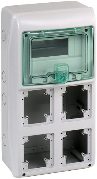 HAGER Golf kiselosztó, 1 soros, 8M, falon kívüli, teli ajtó, 184x210x99mm (VS108PD) Termék információ: IP védettség: Beltérben IP40; kültérben IP30 IK07; szigetelési osztály: II szín: RAL9010 fehér szerelhetőség 63A/400V 50Hz vezeték melegedési teszt: 650 °C szabványok: minden termék megfelel az IEC 60439-3 szabványnak és az RoHS valamint a WEEE előírásoknak 1 x 8 mod.