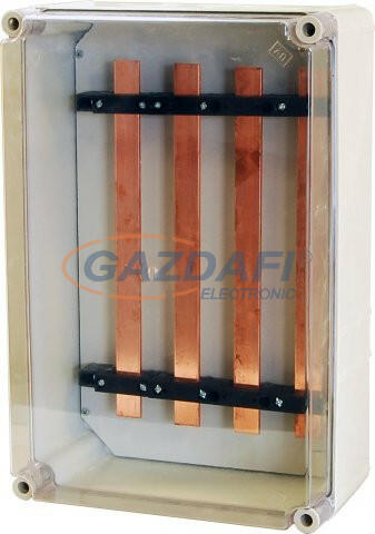 A kép illusztráció! 300x450x170 mm -gyűjtősín tokozat -5P 250A -gyűjtősín: L123 25x5 3 db, 12x5 PE+N 2 db, szerelőlapra szerelve Fogyasztásmérő szekrény rendszerengedélyezési segédlet 2021.06. 09