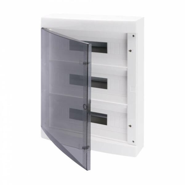 Gewiss GW40051BD műanyag kiselosztó 54 modul, 3 sor, átlátszó ajtóval, IP40, falon kívüli - PE és N sínnel - 550x400x130 mm