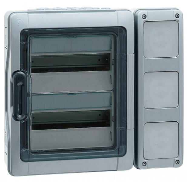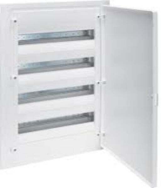 HAGER Golf kiselosztó, 4 soros, 72M, süllyesztett, teli ajtó, 652x426x72mm falkivágásba (VF418PD) Termék információ: IP védettség: Beltérben IP40; kültérben IP30 IK07; szigetelési osztály: II szín: RAL9010 fehér szerelhetőség 63A/400V 50Hz vezeték melegedési teszt: 850 °C szabványok: minden termék megfelel az IEC 60439-3 szabványnak és az RoHS valamint a WEEE előírások