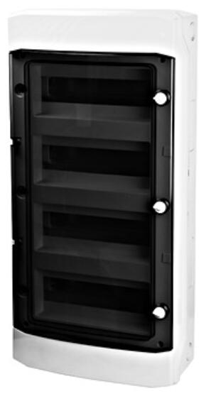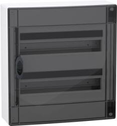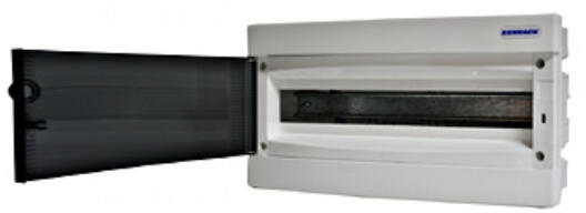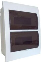 Süllyesztett kiselosztó, PE és N kapcsokkal, IP40 védettséggel, ABS halogénmentes anyagból, átlátszó műanyag ajtóval.