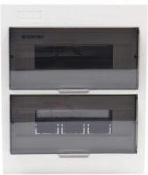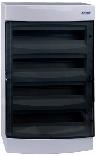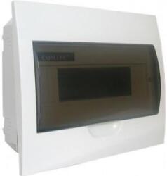 Süllyesztett kiselosztó, PE és N kapcsokkal, IP40 védettséggel, ABS halogénmentes anyagból, átlátszó műanyag ajtóval.