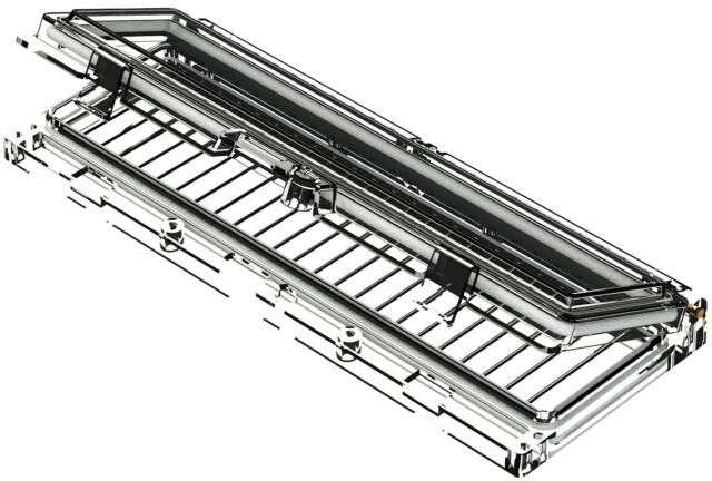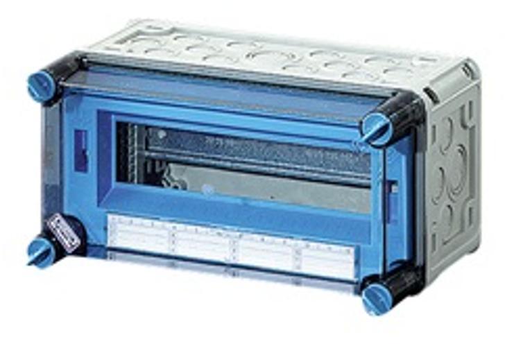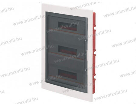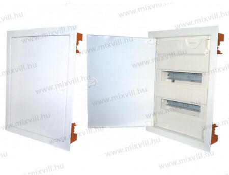 54 modulos kivitelben Föld vagy nulla sínnel Fehér színű keret Nyitható füstszínű polikarbonát ajtó Ellenálló narancsszínű, polisztirén elosztódoboz Öntapadós címke az áramkörök feliratozásához A kötődobozban sorkapcsok elhelyezhetőek Takarócsík a nem használt modulok elrejtéséhez Galvanizált acél DIN sín, a kivehető és állítható síntartóra szerelve IP v