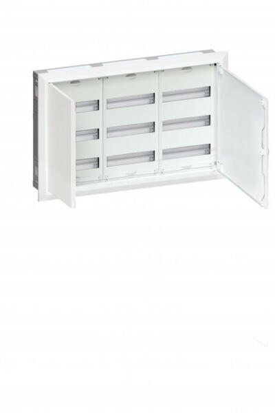 Hager Univers FWU33S Fém mezős elosztó 108 modul, 3 sor, 553x853x110mm, (fal kivágás 502x805x110mm) teli ajtóval, IP30, süllyesztett