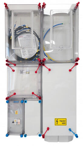 Méret: 600 x 900 x 170 mm Háromfázisú, két mérőhelyes, nappali és vezérelt fogyasztásméréshez, valamint hangfrekvenciás vezérlőkészülék számára kialakított szerelőlappal 2 db földkábeles csatlakoztatásra alkalmas kábelfogadó szekrény 138 mm hosszú, TS35 kalapsínnel 2 db PG36 furat