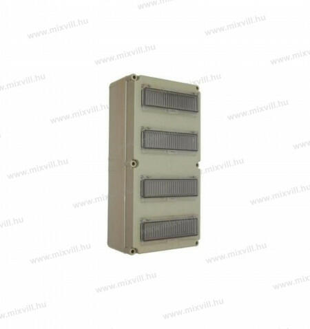 Csatári Plast csoportos mérő modul PVT 3060 ÁK 4x12 mért oldali elmenő áramköri szekrény CSP21. f117. Új rendszerengedélyes 3060 4x12 modulos mért oldali elmenő szekrény 4x12 modul kalapsínnel és 4x12 modul nyitható ablakkal, N és PE sínekkel, szerelőlappal. Mért oldali fogyasztói és közösségi elosztónak alkalmazható. Alkalmazása opcionális. Méretei: Magasság 600 mm