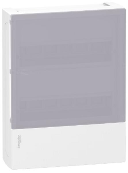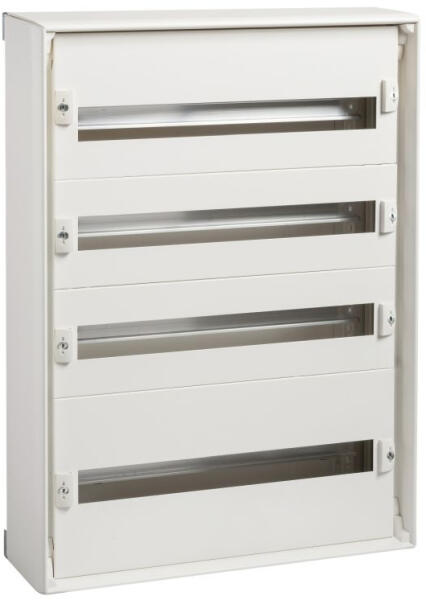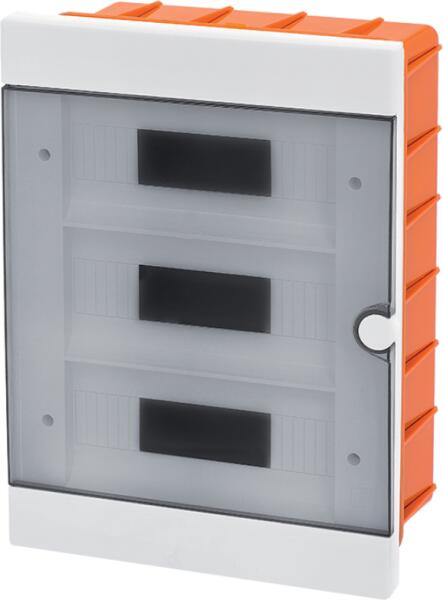 Lakáselosztó (kiselosztó) dobozok falba beépíthető 36 modulhoz. Sorok száma: 3 A kiselosztó dobozok új építésű vagy renoválandó épületekben kerülnek felszerelésre. Olyan moduláris kivitelű doboz, amelyben a lakásban kiépített áramkörök védelmére szolgáló készülékek működnek. Minden sor felfelé 90°-ra nyíló átlátszó ajtóval rendelkezik. Anyaga fehér, nem