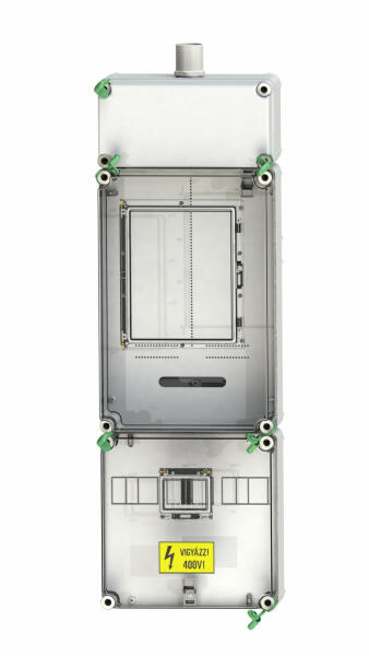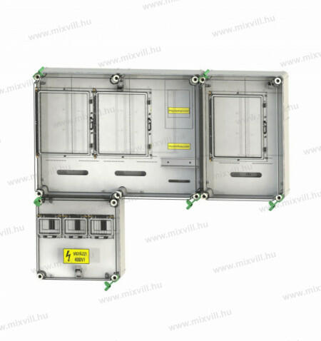 HENSEL HB33KFFF-E Fogyasztásmérő EON területre (HB33KFFF-E) Term ékinformáció: 1 vagy 3 fázisú mérőszekrény mindennapszaki és vezérelt, vagy H tarifás méréshez Mérőhelyek száma: 2 E. ON rendszerengedéllyel Műanyag szerelőlappal Fedélzárás szerszámmal Kettős (külső és belső) plombálási lehetőség 2 helyen plombálható Lelakatolható fedél és kezelőablak Válas
