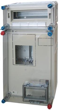 Hensel MI 72201 fogyasztásmérő szekrény egyfázisú mérőnek 300x300x170 (MI72201-0) Jelle mzők: - Egyfázisú fogyasztásmérőhöz - Beépíthető mérőkereszttel és fogyasztásmérő felerősítő csavarokkal, az MSZ 447.98 szerint - Fedélzárás szerszámmal - Kettős (külső és belső) plombálási lehetőséggel - Mellékelt tartozék: vezeték egységcsomag, A50-es csőadapter -