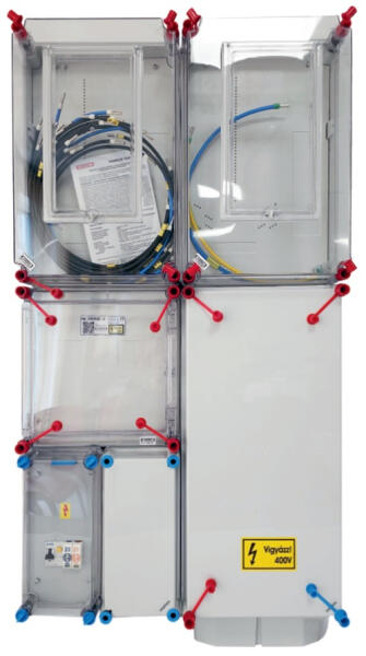HENSEL HB33KHF4D-U 1 és 3 fázisú 2 mérőhelyes fogyasztásmérő szekrény egyedi mindennapszaki (80 A-ig) és H-tarifás (63 A-ig) méréshez (1091019) HB33KHF4D-U két mérőhelyes fogyasztásmérő szekrény földkábeles méretlen oldali és földkábeles, vagy szabadvezetékes mért oldali csatlakozással, mindennapszaki és H-tarifás méréshez. Ennél a kialakításnál a dugaszolóalj