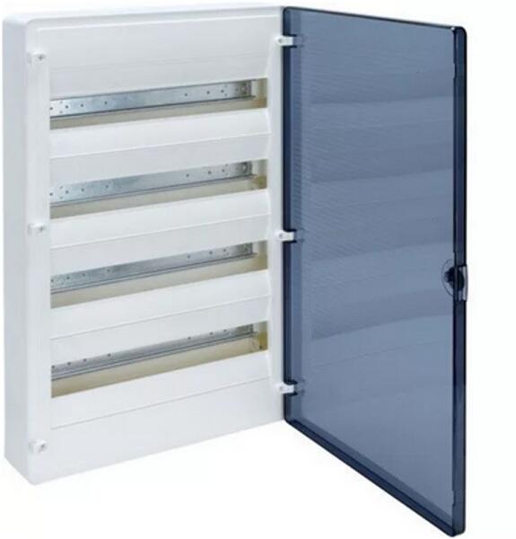 Termék vagy komponens típusa: Ajtó. Szekrény szerelése: Felület, Süllyesztett. Mellső burkolat típusa: Átlátszó. Ajtó nyitási oldal: Jobb vagy bal. A vízszintes sorok száma: 2. 9 mm furattávolság: 26. Soronként 18 mm-es modulok száma: 13. Összesen 18 mm-es modulok: 26. Telepítés módja: Falra szerelés, Süllyesztett. Szekrény anyaga: Technikai műanyag. Szélesség: 336 mm