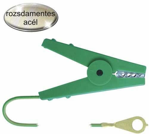 Zsinór-készülék csatlakozó - rozsdamentes acélból készült csatlakozó, - ideális villanypásztor zsinórok, huzalok, kötelek és a készülék összekötéséhez, - erős rugóval ellátott krokodil fogó, - vezeték végén M8 méretű rögzítő szem, - vezeték hosszúsága 100 cm, - színe zöld vagy piros.
