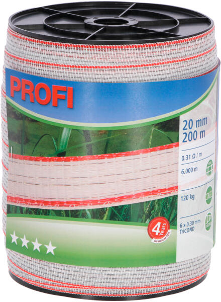 A szalag nagyobb (akár 4.000-10.000 méter) hosszúságú villanypásztor kerítések kiépítéséhez is alkalmas. 20 mm széles és 200 m hosszú