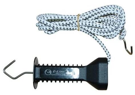 áramvezető rugalmas kötéllel rendkívül praktikus villanypásztorajtó legfeljebb 9 méteres kerítésnyílásokhoz nem akad be az állatok sörénye és farokszőre nemesacél kampók a kapurendszer helyes felszerelése 3 kapucölöp használatával kb. kétszeres méretűre kihúzható A készlet a következőkből áll: 1 db 7 mm átmérőjű rugalmas elektromos kötél (3 év garancia),