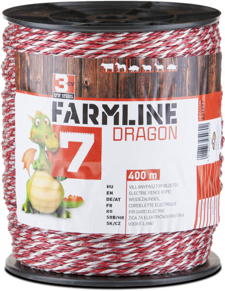 Hosszabb (maximum 19 km hosszú) kerítések esetén, haszonállatok lekerítéséhez ajánljuk Dragon 7 vezetékünket. Tulajdonságok: hossz: 400 m ajánlott kerítéshossz: 19 000 m ellenállás: 0,11 Ohm vezetőszálak: 3x0,2 mm Niro + 3 x 0,25 Cu szakítószilárdság: 300 kg