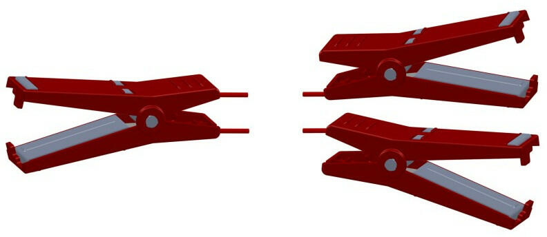 kábel hossza: 2 x 60 cm csatlakozó rozsdamentes acélból 3 krokodilcsipesszel, 3 soros, 40 mm-es szalagos kerítéshez a krokodilcsipeszek felülete optimális csatlakozást biztosít a 40 mm-es villanypásztor szalag esetében