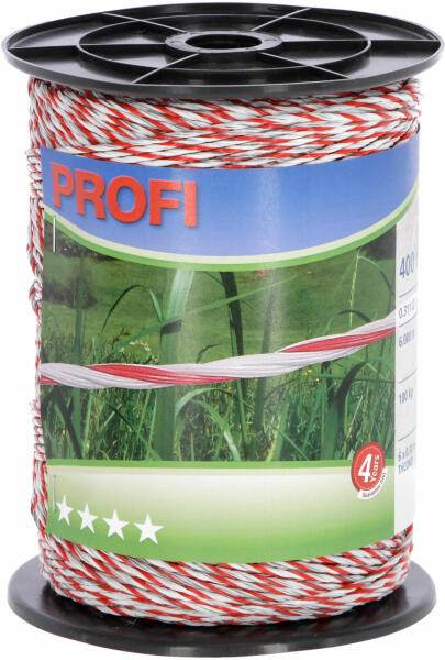 a TriCond szálaknak köszönhetően rendkívül jó a vezetőképessége rendkívül magas szakítószilárdság különböző hosszúságban kapható magas feldolgozási minőség kitűnő ár-érték arányTulajdonságok Ellenállás ohm/méter 0.31 ohm/mHossz 400 mAjánlott maximum kerítéshossz (méter) 6000 Szakítószilárdság (kg) 100Perm. Közvetlen húzóerő [kg] 0Szín fehér / vör