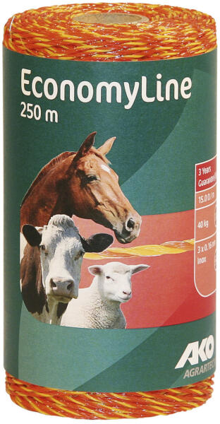 ideális rövid villanypásztor kerítésekhez és részleges elkerítésekhez 3 év UV-állósági garanciaTulajdonságok Ellenállás ohm/méter 15.0 ohm/mHossz 250 mAjánlott maximum kerítéshossz (méter) 150Szakítószilárdság (kg) 40Szín sárga / narancsFémszálak száma (db) 3Átmérő [mm] 0,16 mmCikkszám Ajánlott maximum kerítéshossz (méter) Ellenállás ohm/méter Fémszálak s